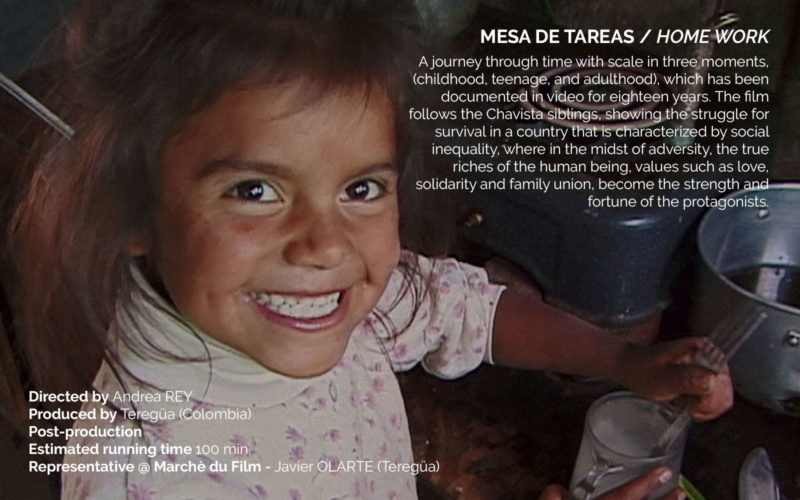 All of the following films were recipients of the FDC-Colombian Film Fund grant in the production category. Now, they are showcased as they are in advanced post production and are searching to premiere and / or find a Sales Agent. The producers of these films are here, so feel free to reach out to them with your inquiries.