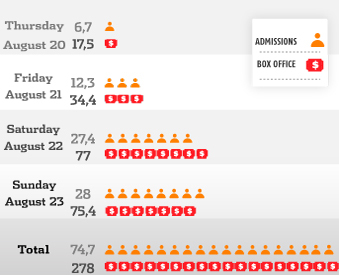 Admissions and box office for the film The 33 in its first week in Colombia