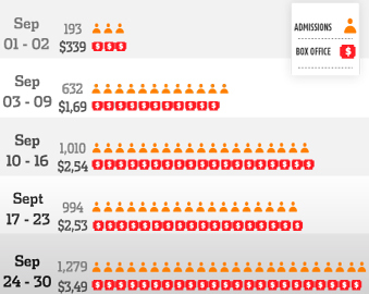 Weekly box office receipts in Colombia during September 2015
