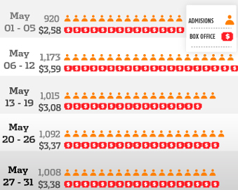 Weekly box office receipts in Colombia during May 2016