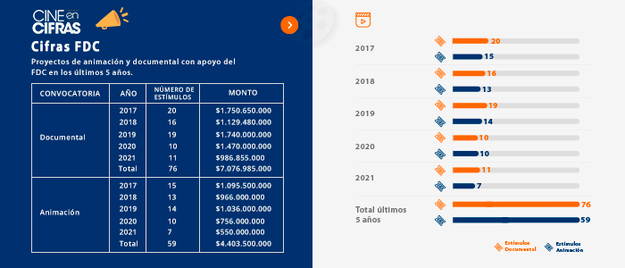 Proyectos de animación y documental con apoyo del FDC en los últimos 5 años.