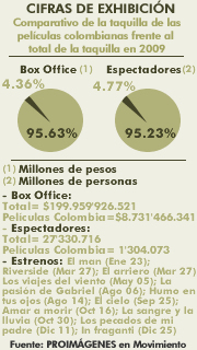 Comparativo de la taquilla del cine colombiano frente al total de la taquilla de 2009