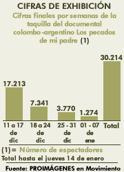 Cifras finales por semanas de la taquilla del documental colombo-argentino Los pecados de mi padre