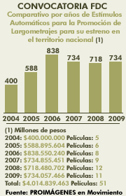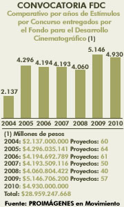 Comparativo por años de los Estímulos por Concurso entregados por el Fondo para el Desarrollo Cinematográfico -FDC-