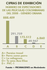 Cifras de exhibición - Número de espectadores de las películas colombianas del 2008 - Género Drama