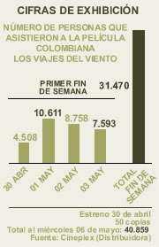 Cifras de Exhibición: Número de espectadores en primer fin de semana de la película colombiana Los viajes del viento