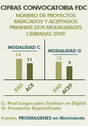 Convocatoria FDC. Número de proyectos radicados y aceptados en las primeras dos modalidades que cerró la Convocatoria 2009