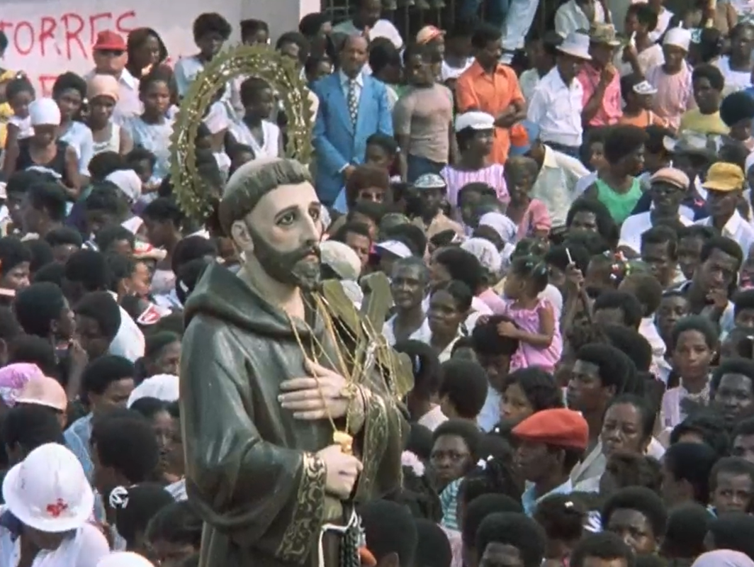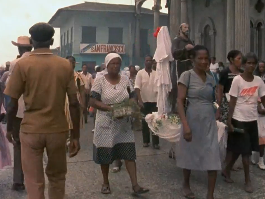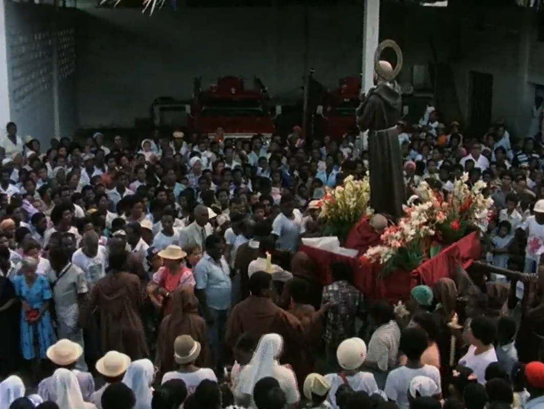 1983Recorrido por Quibdó, Chocó, donde desde 1929 se celebra la Fiesta Patronal de San Pacho. Se muestra la elaboración de las carrozas y verbenas, el desfile de las banderas y el baile de las vacas locas; así como la muestra entre lo profano y lo divino en esta celebración que supera lo religioso y se incrusta en las tradiciones populares del pueblo chocoano.