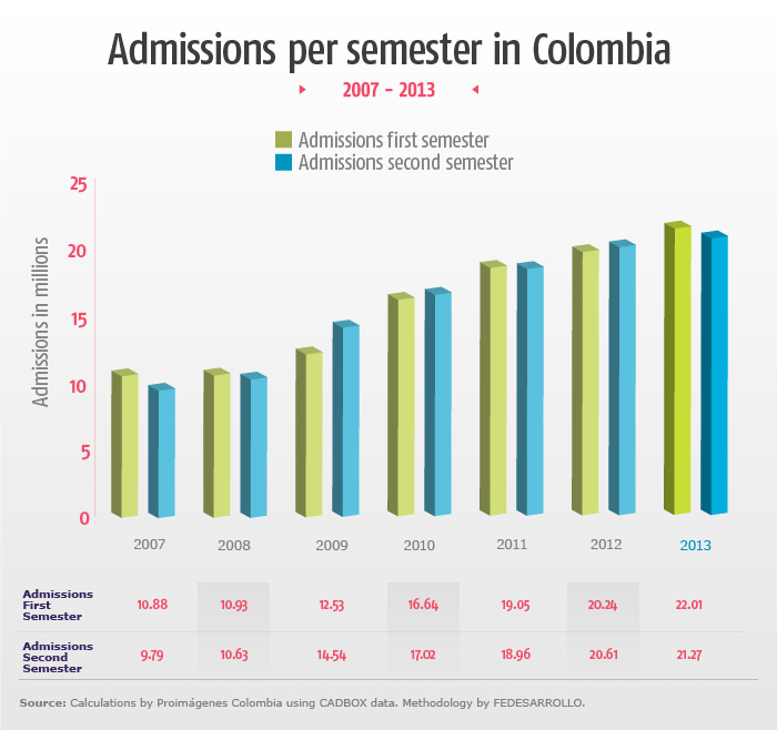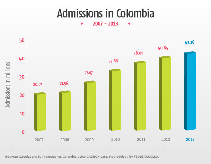 - The number of admissions in Bucaramanga grew by 500,000 and in the rest of the country (Other cities) by approximately 1,000,000 in 2013 compared to the previous year.
