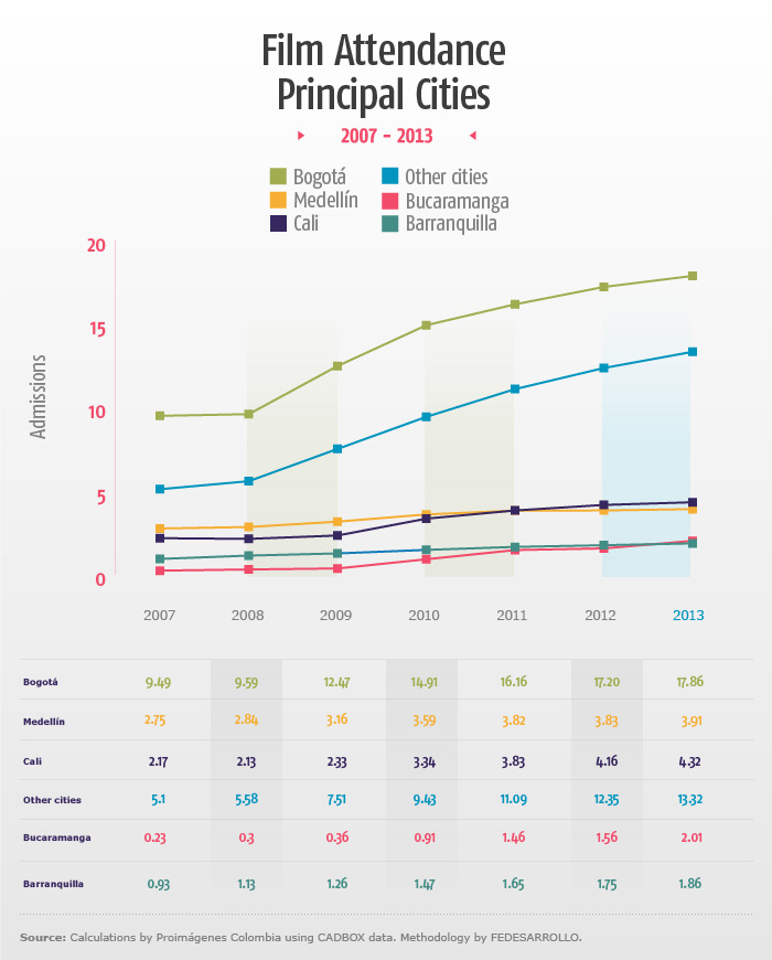 - Film attendance throughout Colombian cities continued to grow in 2013.