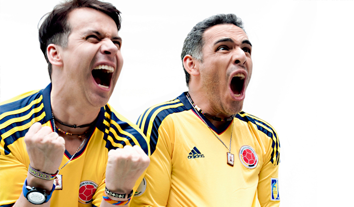 “Nos vamos pal Mundial” Es la divertidísima historia de dos amigos, choferes de taxi, que prometen a la Virgen del Carmen , patrona de los conductores, que viajarán hasta Brasil si les hace el milagrito declasificar la selección colombiana de fútbol al Mundial del 2014. El deseo se cumple y estos dos bonachones y divertidos taxistas tendrán el desafío de buscar el dinero a como dé lugar para poder viajar hasta las tribunas de los estadios brasileros y gritar a viva voz, vamos Colombia!! Sus únicas herramientas son sus divertidas habilidades para el rebusque y la compañía constante de su emisora radial Olímpica Estéreo, a la que son fieles radioescuchas al igual que todos sus compañeros del gremio. Su despiadado jefe, la falta de dinero, la envidia y la venganza buscarán dejarlos fuera de lugar en sus aspiraciones, sin embargo, la pasión desbordada que siente este par de taxistas por la Selección, su sólida amistad y su gran devoción a la Virgen del Carmen, no apagarán la esperanza de cumplir sus sueños y con plata en mano gritar fuertemente NOS VAMOS PAL MUNDIAL!!!
