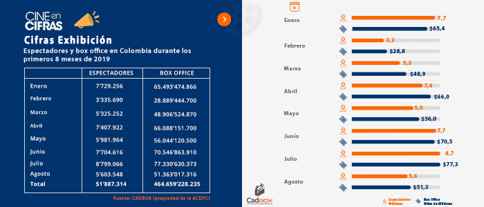 Comportamiento exhibidores con 13 o menos salas en el país durante 2019