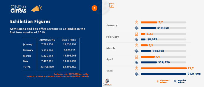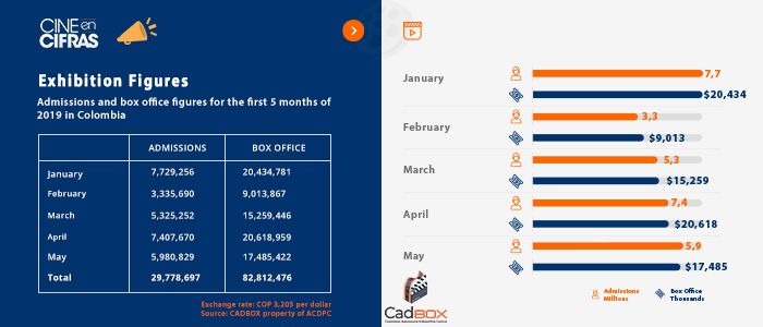 Admissions and box office figures for the first 5 months of 2019 in Colombia