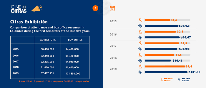 Comparison of attendance and box office revenues in Colombia during the first semesters of the last five years