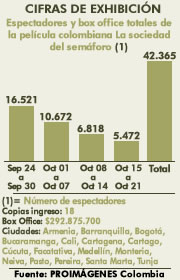 Espectadores y Box Office finales de la película colombiana La sociedad del semáforo