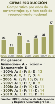 Comparativo por años de cortometrajes que han recibido reconocimiento nacional