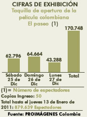 Taquilla de las primeras cuatro semanas de la película colombiana El paseo