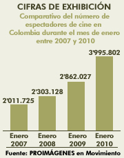 Comparativo del número de especatores de cine en Colombia durante enero entre 2007 y 2010