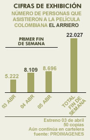 Cifras de exhibición - Número de personas que asistieron a la película colombiana El arriero (Primer fin de semana)